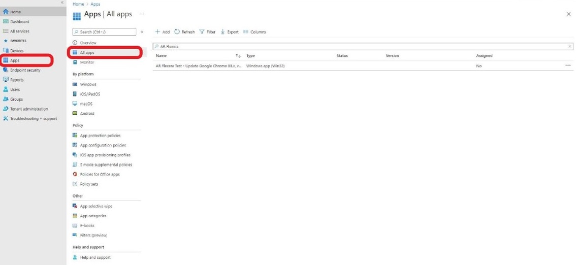 5. Now that your Application is in Intune, you can decide how to distribute.