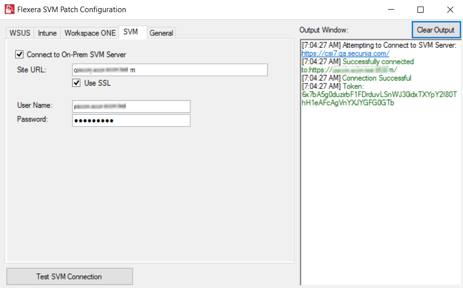 12. Click Test SVM Connection button, on successful connection you will receive a Token in the Output Window.