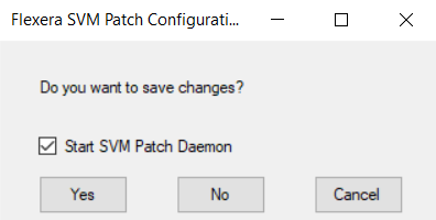 18. To run the services, click close button. You will be prompted to enable Start SVM Patch Daemon in the closing window. Click Yes to restart the Patch Daemon for the change to take effect.