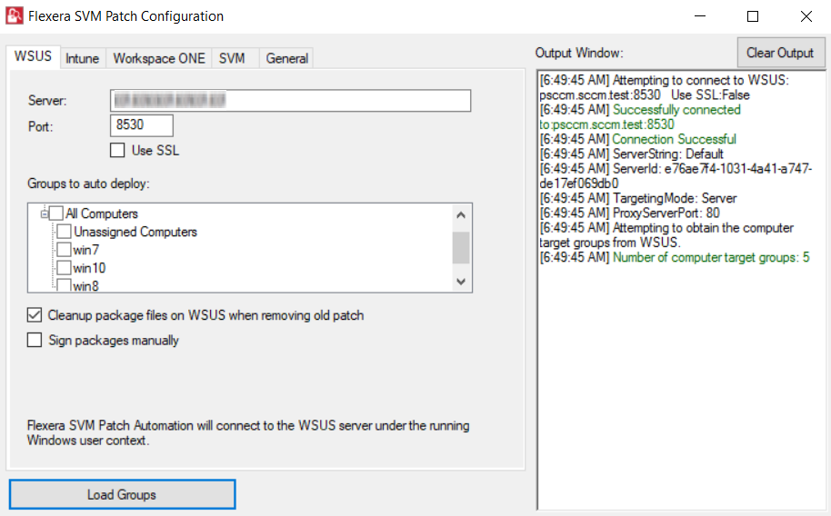 3. In WSUS Connection tab, enter the WSUS server details and the port number, click Load Groups.