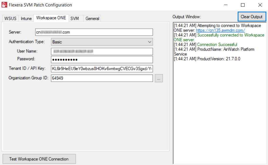 10. Click Test Workspace ONE Connection button, on successful connection you will receive a successful message in the Output Window.