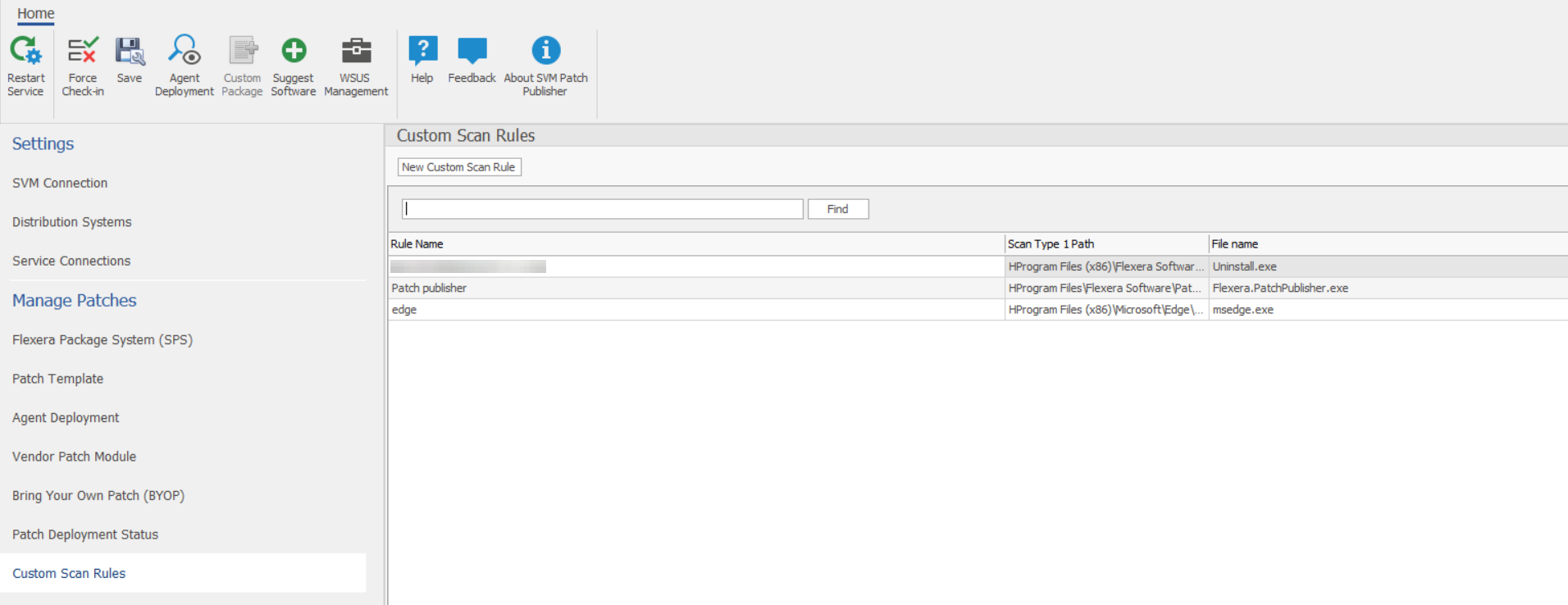 1. On Manage Patches menu, click Custom Scan Rules in the left pane.