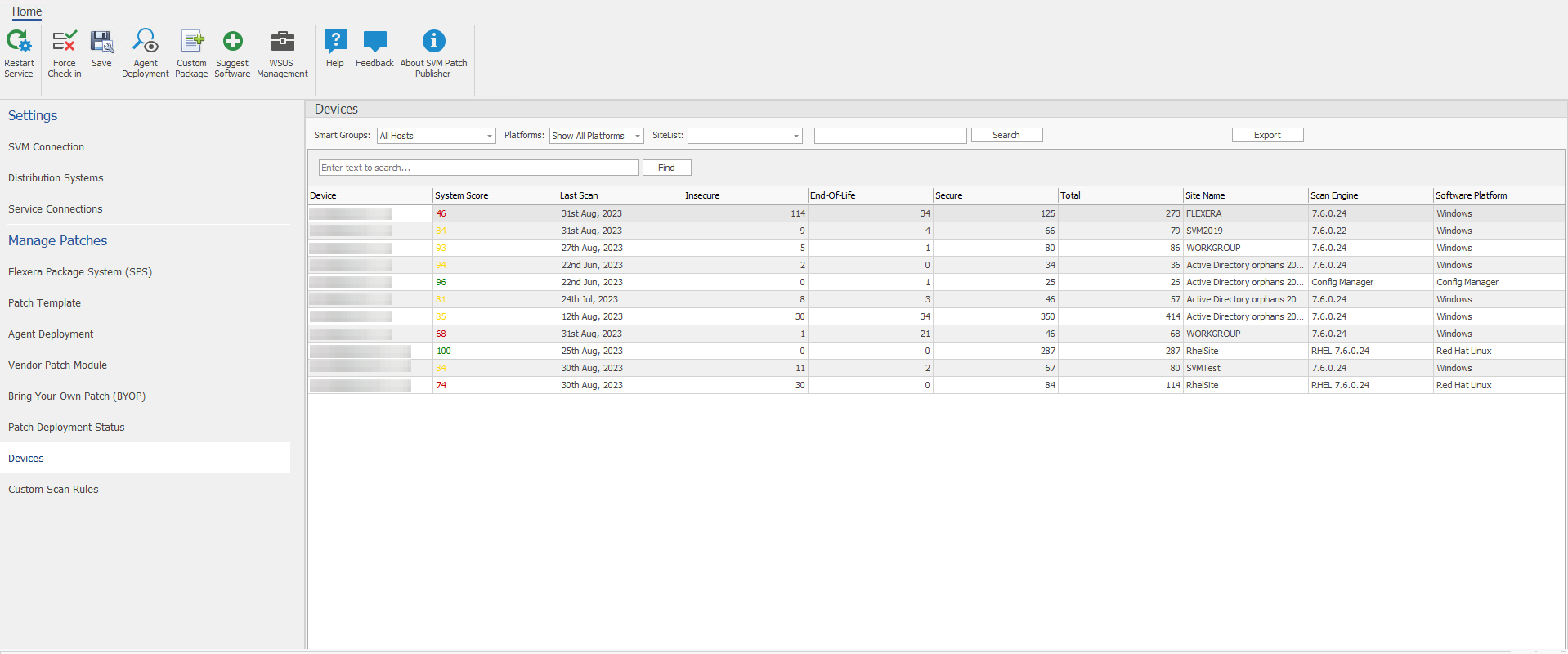 Use the Devices page to view the reports related to devices/hosts in Patch Publisher. Use Filters to filter the devices based on Smart Groups/Platforms/SiteList criteria.