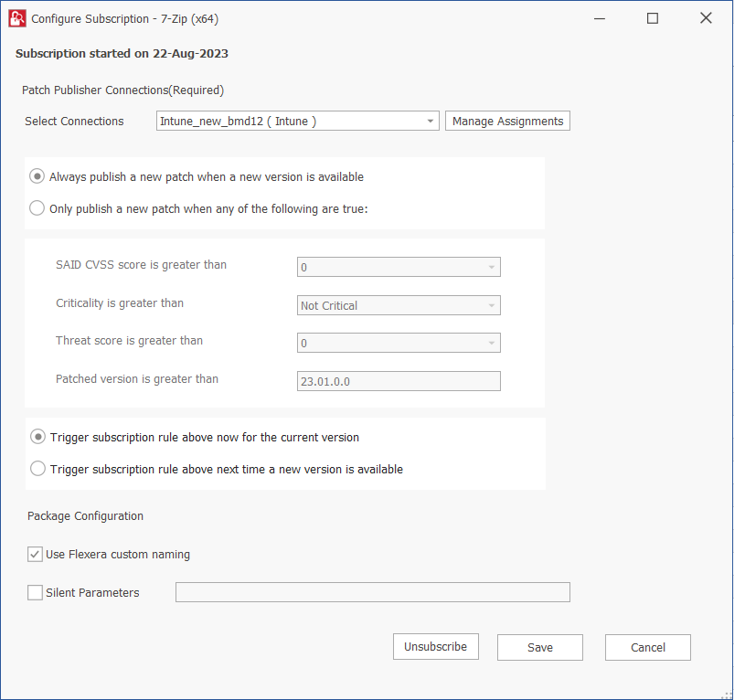 3. On Configure Subscription dialog box, click Unsubscribe button.