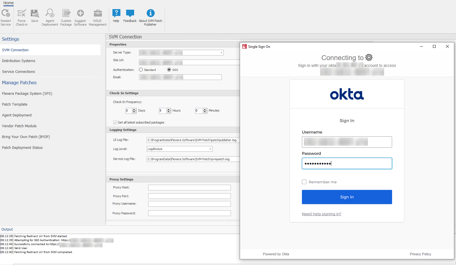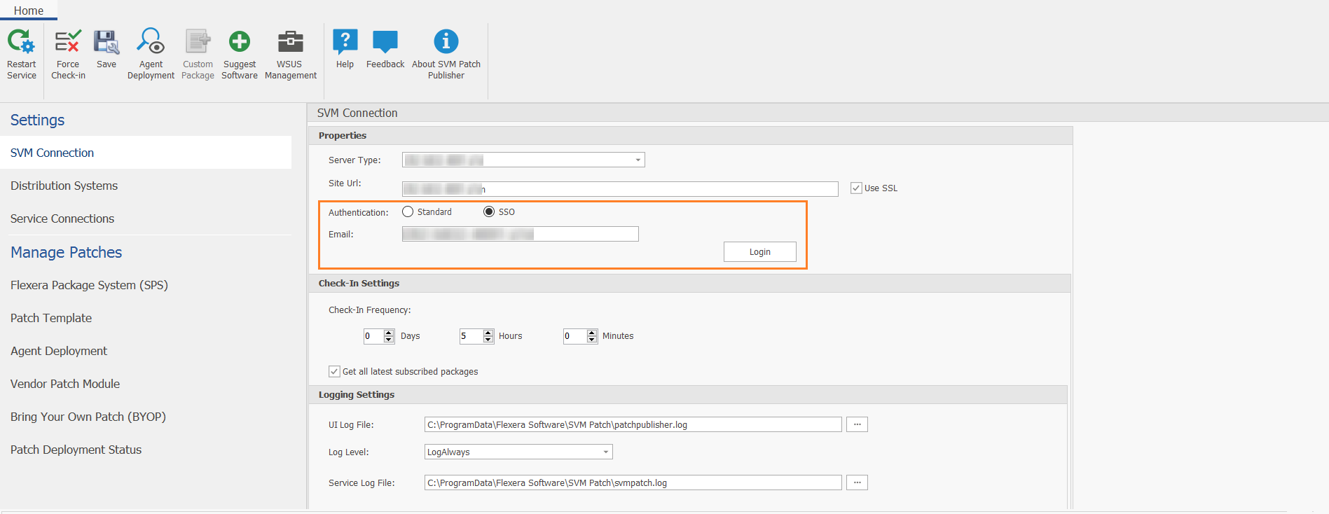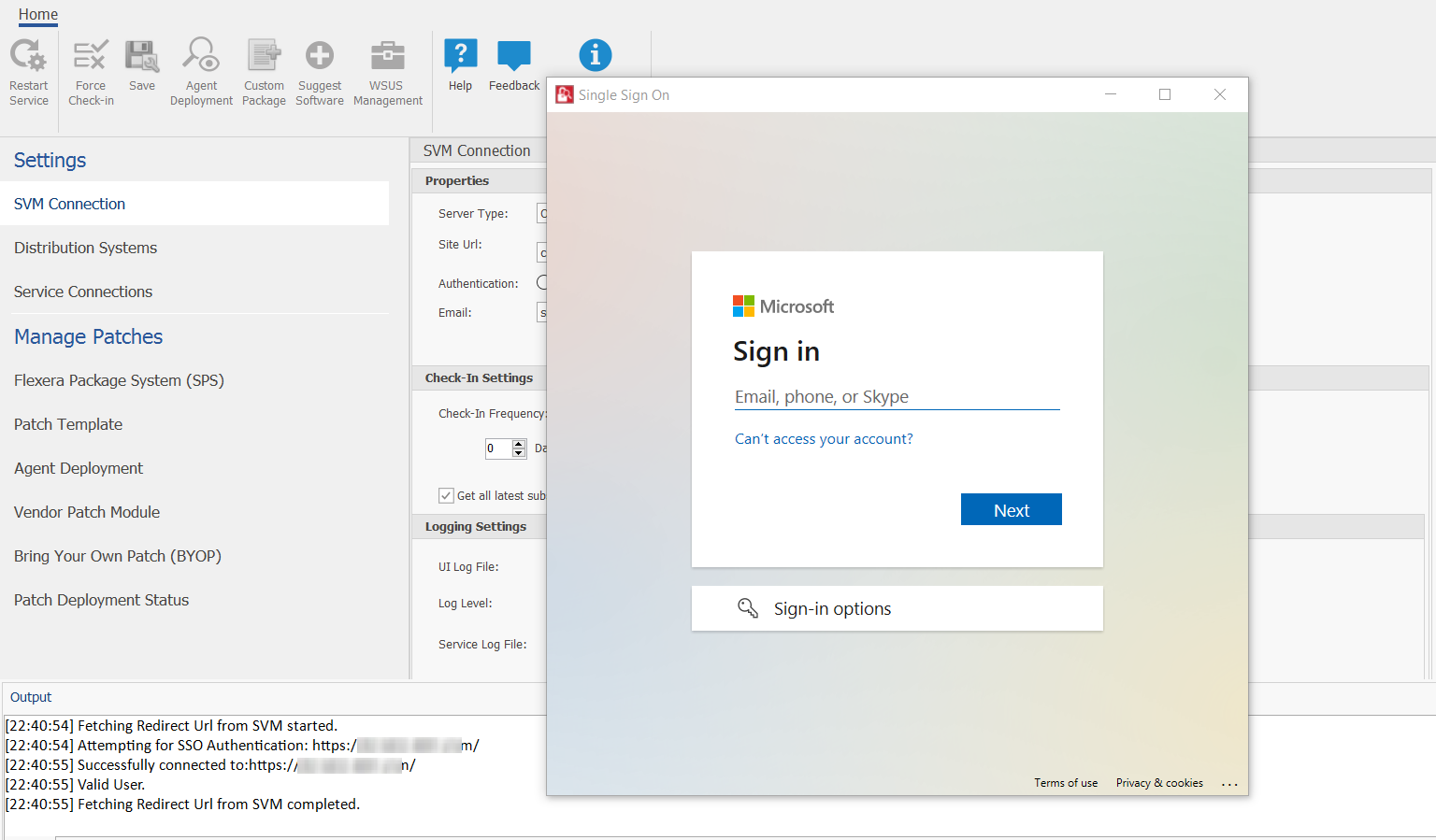 The SVM Patch Publisher supports Single Sign-On for authentication to connect with the SVM.