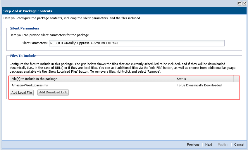 You are also able to change the files that are included in the update package, which can either be local files or links to be dynamically downloaded upon publishing of the package.