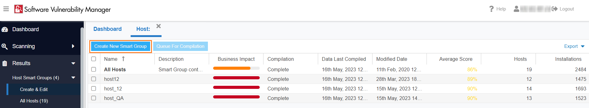 A list of created Host Smart Groups appears. To create a new Smart Group, click Create New Smart Group link.